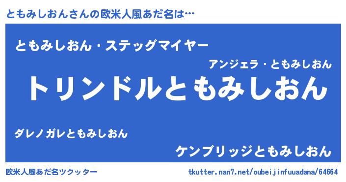 | 男性向けラノベタイトル風あだ名 | 『ともみしおん~年齢イコール彼女いない歴の魔法使い~』 |