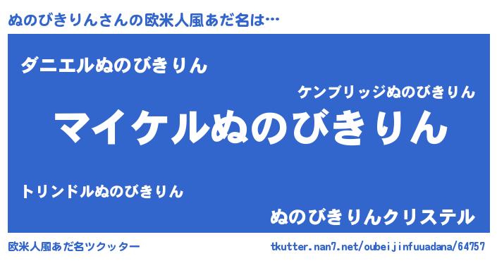 | 男性向けラノベタイトル風あだ名 | 『ぬのびきりんの憂鬱』 |
