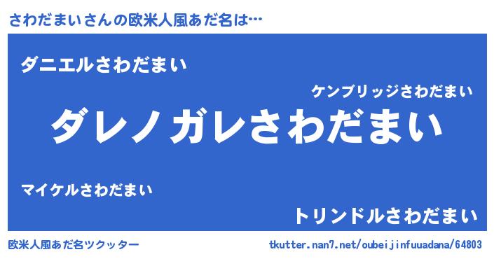 | 女子向けラノベタイトル風あだ名 | 『さわだまいが死なない童話 林檎のさわだまいの診療簿』 |