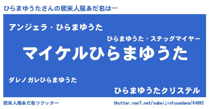 | 男性向けラノベタイトル風あだ名 | 『ひらまゆうたの憂鬱』 |