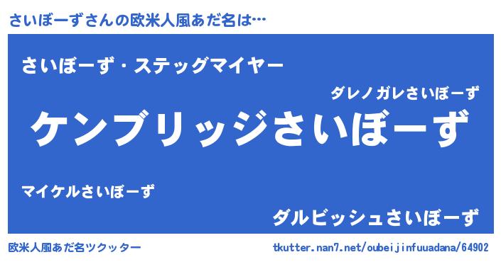 | 男性向けラノベタイトル風あだ名 | 『Re:さいぼーずから始める異世界生活』 |