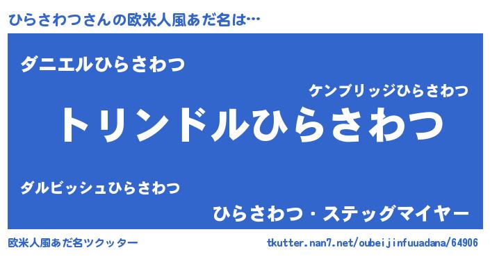 | 男性向けラノベタイトル風あだ名 | 『ひらさわつ~年齢イコール彼女いない歴の魔法使い~』 |