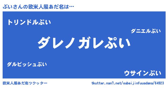 | 男性向けラノベタイトル風あだ名 | 『魔弾の王とぷい』『プイスレイヤー』 |