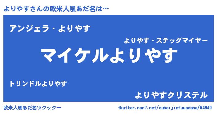 | 男性向けラノベタイトル風あだ名 | 『よりやすの憂鬱』 |