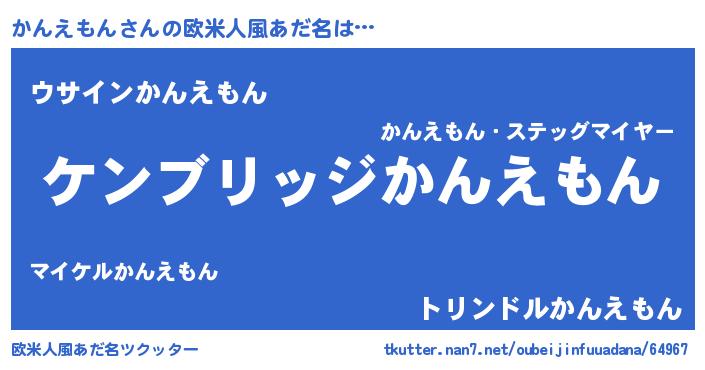 | 男性向けラノベタイトル風あだ名 | 『Re:かんえもんから始める異世界生活』 |