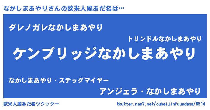 | 男性向けラノベタイトル風あだ名 | 『Re:なかしまあやりから始める異世界生活』 |