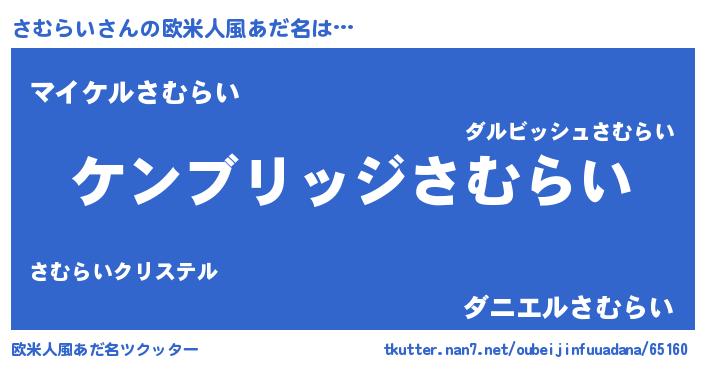 | 男性向けラノベタイトル風あだ名 | 『Re:さむらいから始める異世界生活』 |