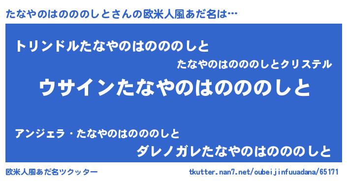 | 女子向けラノベタイトル風あだ名 | 『たなやのはのののしとの卵を拾いまして』 |