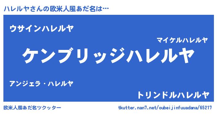 | 男性向けラノベタイトル風あだ名 | 『Re:ハレルヤから始める異世界生活』 |