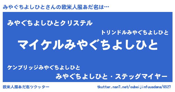 | 男性向けラノベタイトル風あだ名 | 『ミヤグチヨシヒトアートオンライン』 |
