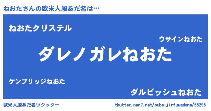 | 意味不明あだ名 | 『住所不定無職ねおた(10歳)』『自称ねおた』 |