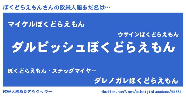 | 男性向けラノベタイトル風あだ名 | 『誰もが恐れるあのぼくどらえもんが、ぼくの専属メイドになるようです。』 |