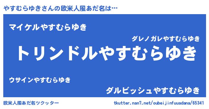 | 男性向けラノベタイトル風あだ名 | 『やすむらゆき~年齢イコール彼女いない歴の魔法使い~』 |