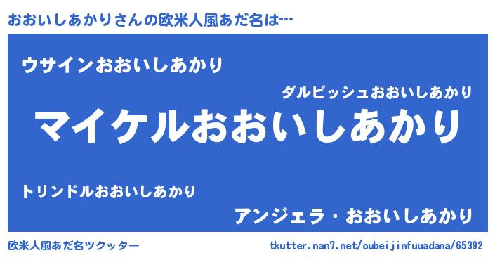 | 男性向けラノベタイトル風あだ名 | 『おおいしあかりの憂鬱』 |