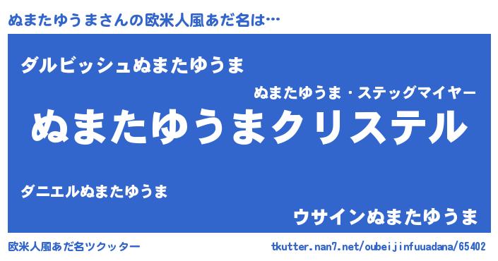 | 男性向けラノベタイトル風あだ名 | 『やはりぬまたゆうまの青春ラブコメはまちがっている 』 |