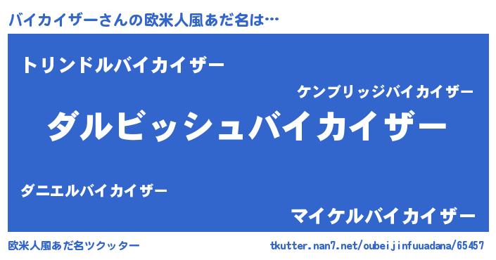 | 意味不明あだ名 | 『永久保存バイカイザー』 |