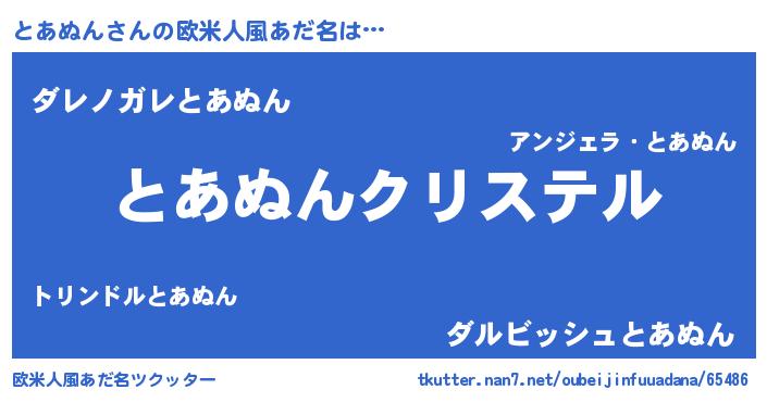 | ポケモン風あだ名 | 『トアヌダネ』『トーアイ』 |