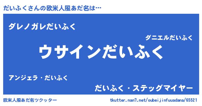 | 女子向けラノベタイトル風あだ名 | 『だいふくの卵を拾いまして』 |