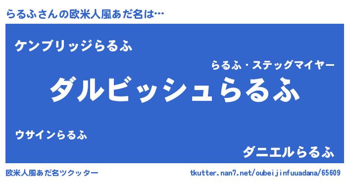 | ヘコむあだ名 | 『らるふ(笑)』『らるっちょ』『牛乳』 |