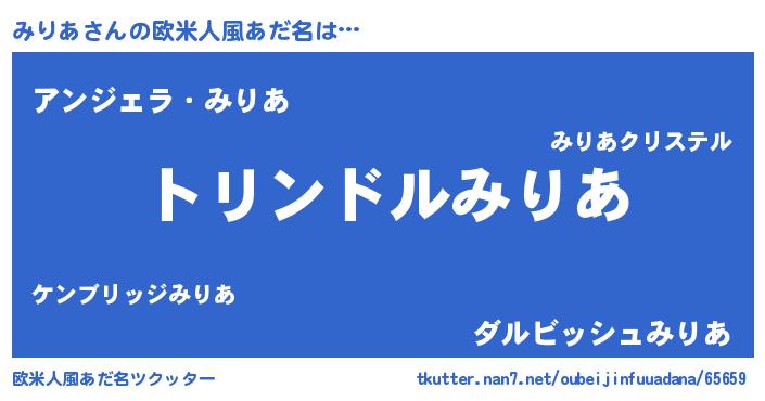 | 意味不明あだ名 | 『めかぶ科みりあ属』『永久保存みりあ』 |