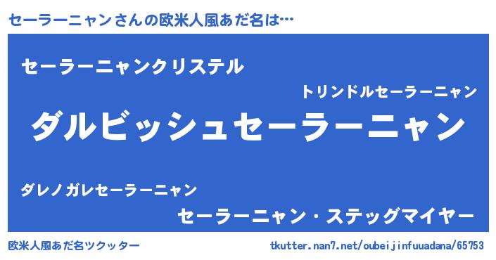 | 男性向けラノベタイトル風あだ名 | 『セーラーニャンという概念が存在しない退屈な世界 』 |