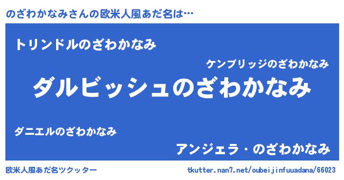 | 男性向けラノベタイトル風あだ名 | 『のざわかなみという概念が存在しない退屈な世界 』 |