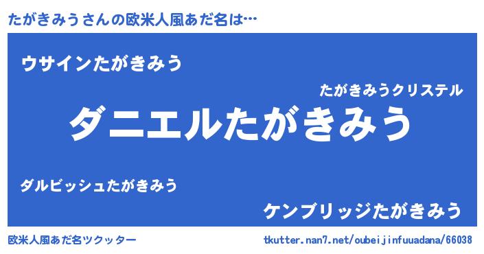 | ヒーロー風カッコイイあだ名 | 『正義の使者たがきみう』『魔戒騎士タガ』 |