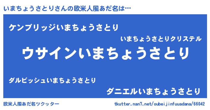 | 男性向けラノベタイトル風あだ名 | 『いまちょうさとりの嫁は女の子じゃないと思った?』 |
