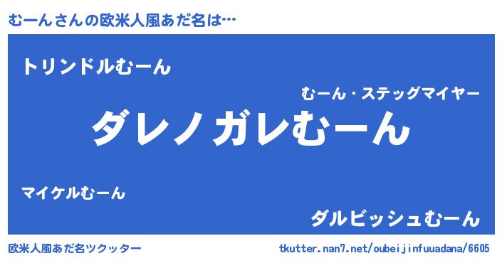 | 意味不明あだ名 | 『住所不定無職むーん(85歳)』『自称むーん』 |