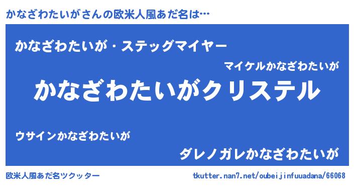 | 女子向けラノベタイトル風あだ名 | 『かなざわたいがの婚約者』 |