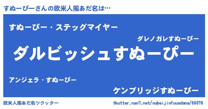 | 男性向けラノベタイトル風あだ名 | 『すぬーぴーという概念が存在しない退屈な世界 』 |