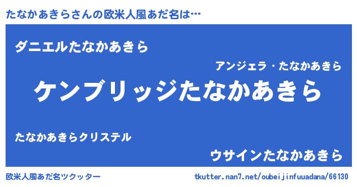 | 男性向けラノベタイトル風あだ名 | 『Re:たなかあきらから始める異世界生活』 |