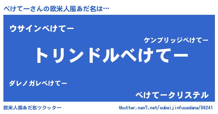 | 男性向けラノベタイトル風あだ名 | 『べけてー~年齢イコール彼女いない歴の魔法使い~』 |