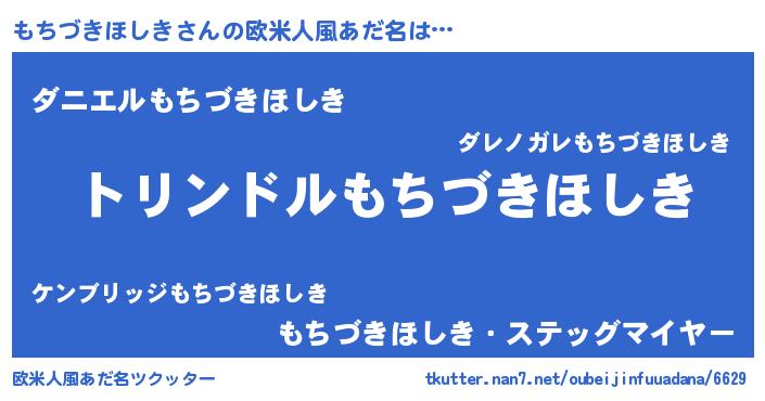 | 男性向けラノベタイトル風あだ名 | 『もちづきほしき~年齢イコール彼女いない歴の魔法使い~』 |