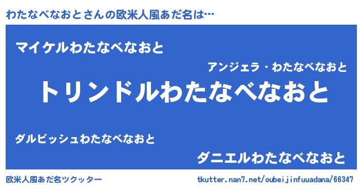 | 男性向けラノベタイトル風あだ名 | 『転生したらわたなべなおとだった件』 |