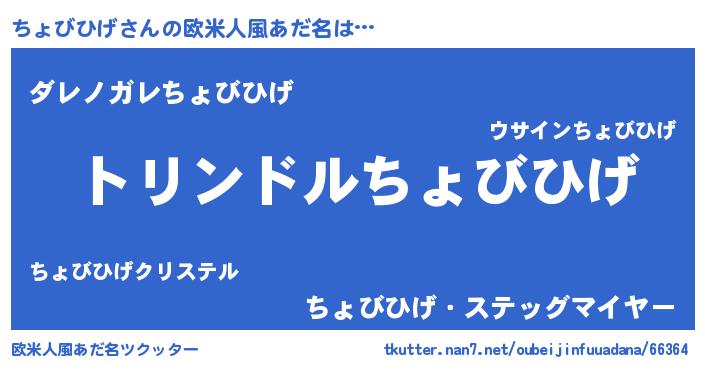 | 男性向けラノベタイトル風あだ名 | 『ちょびひげ~年齢イコール彼女いない歴の魔法使い~』 |