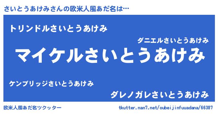 | 男性向けラノベタイトル風あだ名 | 『さいとうあけみの憂鬱』 |