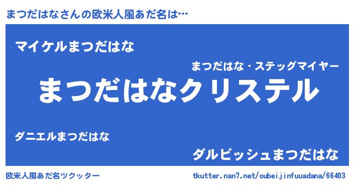| 男性向けラノベタイトル風あだ名 | 『やはりまつだはなの青春ラブコメはまちがっている 』 |