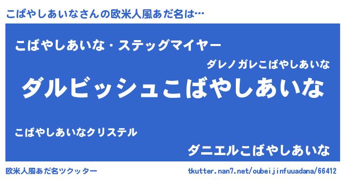 | 女子向けラノベタイトル風あだ名 | 『異世界で失敗しない100のこばやしあいな』 |