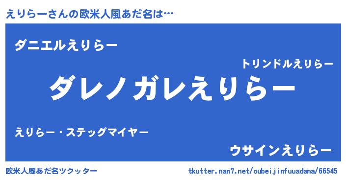 | 男性向けラノベタイトル風あだ名 | 『この素晴らしい世界にえりらーを!』 |