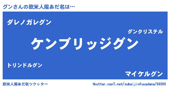 | 男性向けラノベタイトル風あだ名 | 『Re:グンから始める異世界生活』 |