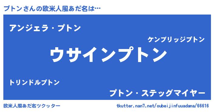 | 男性向けラノベタイトル風あだ名 | 『プトンの嫁は女の子じゃないと思った?』 |