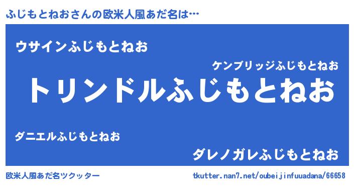 | 女子向けラノベタイトル風あだ名 | 『ふじもとねおの玉の輿計画!』 |