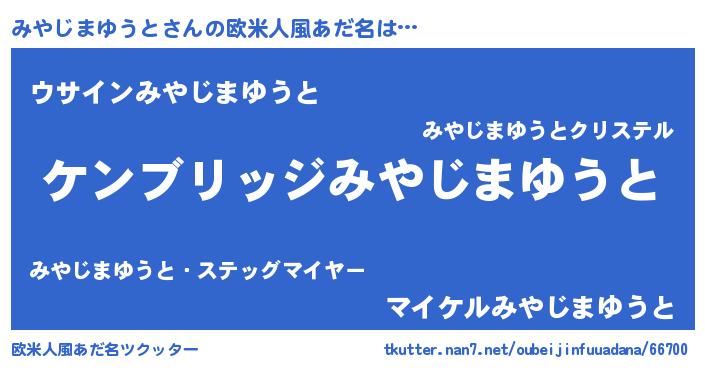 | 意味不明あだ名 | 『自称みやじまゆうと』 |