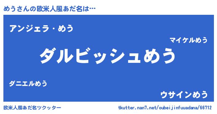 | 女子向けラノベタイトル風あだ名 | 『異世界で失敗しない100のめう』 |