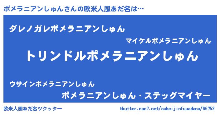 | 男性向けラノベタイトル風あだ名 | 『ポメラニアンシュンスレイヤー』 |