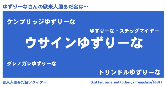 | ポケモン風あだ名 | 『ヒユズリーナ』『ユズセウス』 |