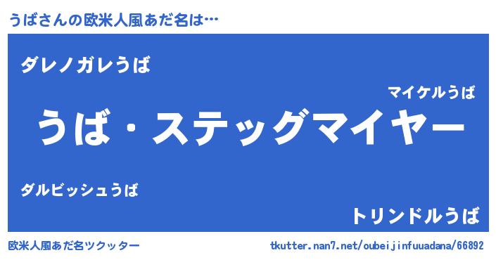 | 男性向けラノベタイトル風あだ名 | 『緋弾のウバ』『魔弾の王とうば』 |