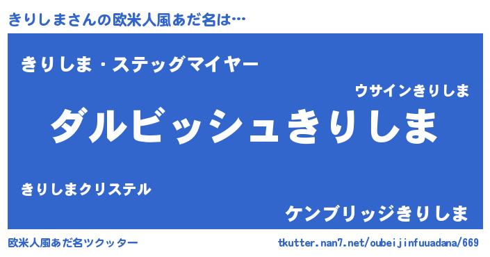 | ヘコむあだ名 | 『きりしま(震え声)』『きりっちょ』 |