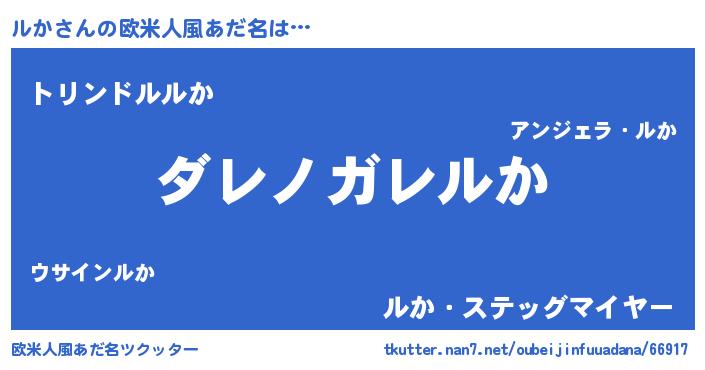 | 男性向けラノベタイトル風あだ名 | 『この素晴らしい世界にルかを!』 |